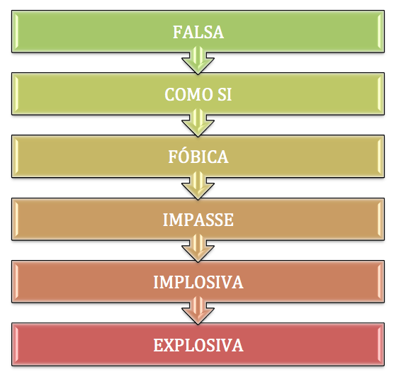 4) Capa “Impasse”: Cuando dejamos de usar nuestras mascaras y roles, cuando afrontamos nuestros miedos más profundos, surge una gran crisis. Si yo no soy quien he aprendido que tengo que ser, entonces ¿quién soy? Aquí experimentamos un estado de bloqueo (impasse), el vacío, la nada.