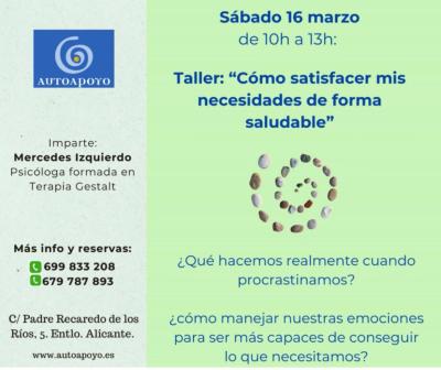Taller: Sábado 16 marzo, de 10h a 13h.